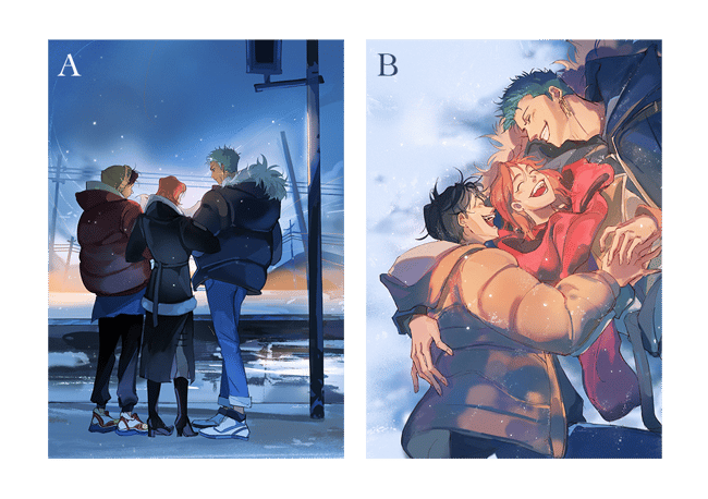 (!) Please keep in mind that big prints ( < A3 or A3) will be shipped out with tubes, therefore it is not possible to include non flat merch (charms, pins, etc). Please make a separate order if you wish to purchase merch as well